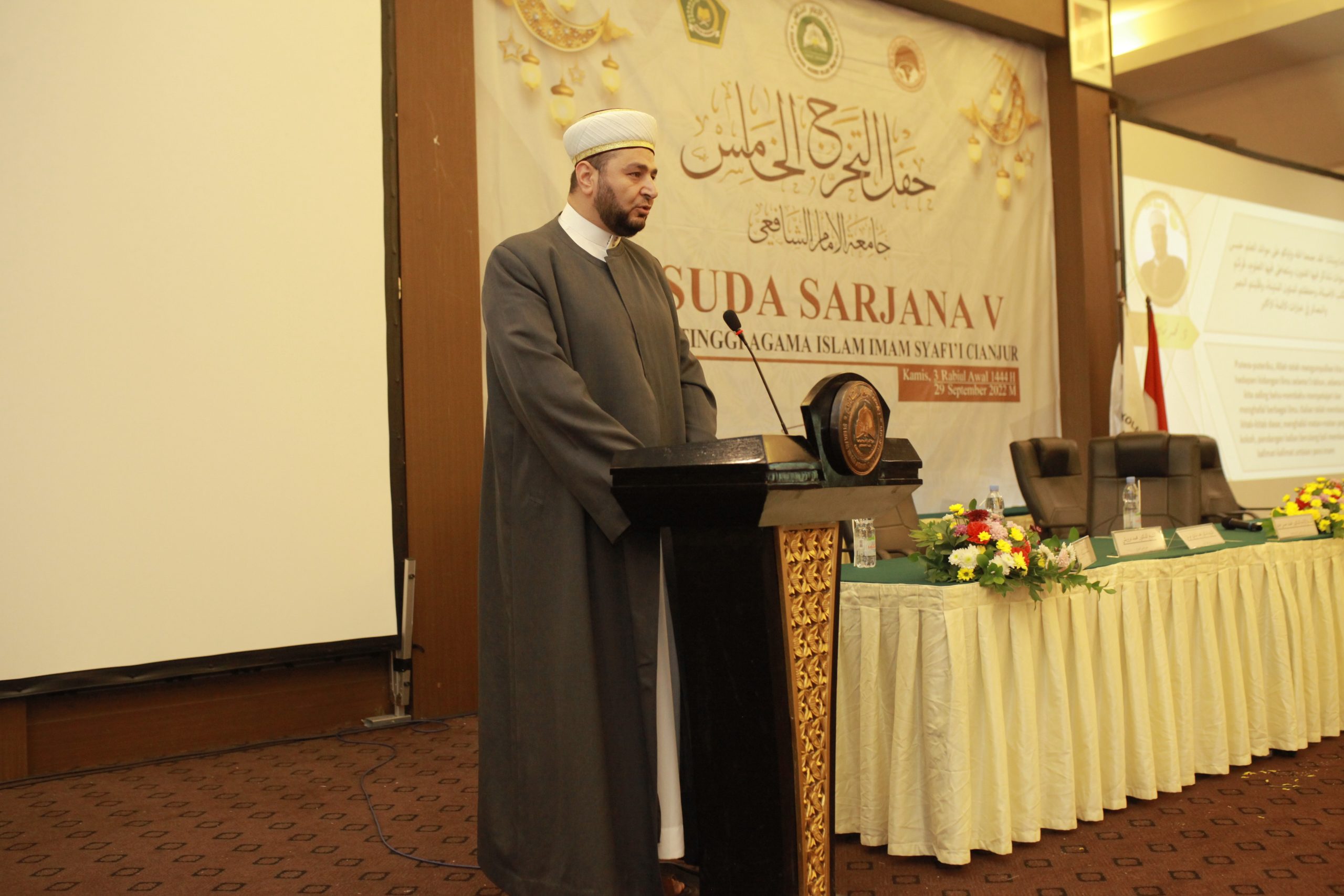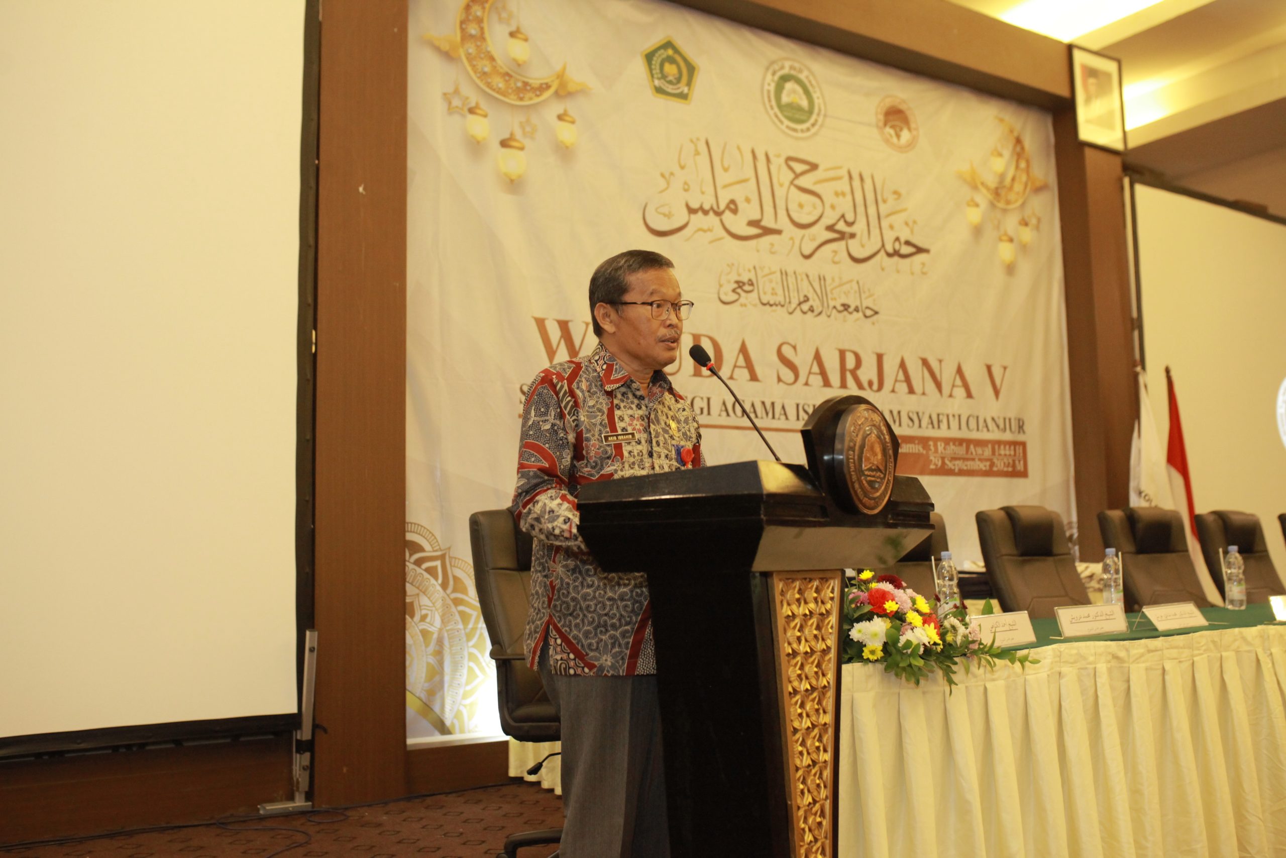 Cianjur – Wisuda V Sekolah Tinggi Agama Islam (STAI) Imam Syafi’i Cianjur, Jawa Barat mewisuda sebanyak 69 mahasiswa dan 18 mahasiswi Program Studi Akhwal Syakhshiyyah dan Pendidikan Bahasa Arab, pada Kamis 29 September 2022 di Palace Hotel Cipanas Cianjur.